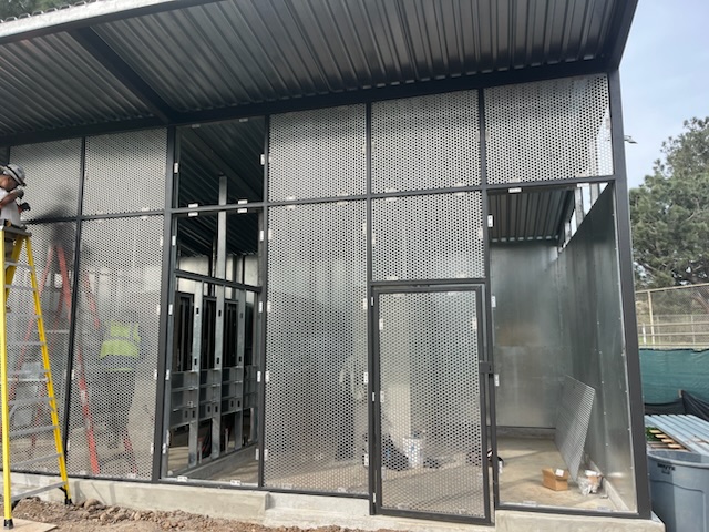- Continuing metal framing and metal sheeting for Restroom #1 and Restroom #2
